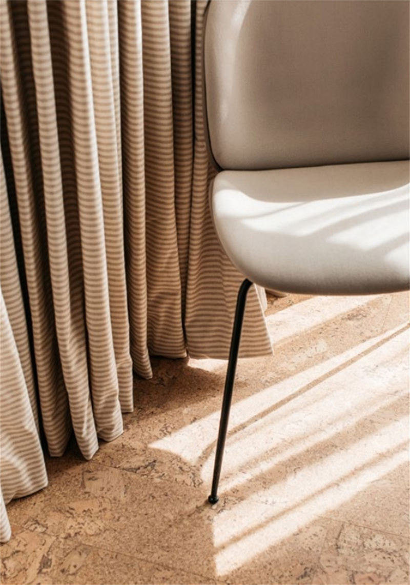 無論是酒店套房內還是吧臺休憩區,軟木地板天然的紋理色調與場景中的元素相輔相成,營造出柔和溫暖的主基調。軟木柔軟保暖的性能,讓整個空間透出靜謐之美的同時,又給予了其家的溫度。