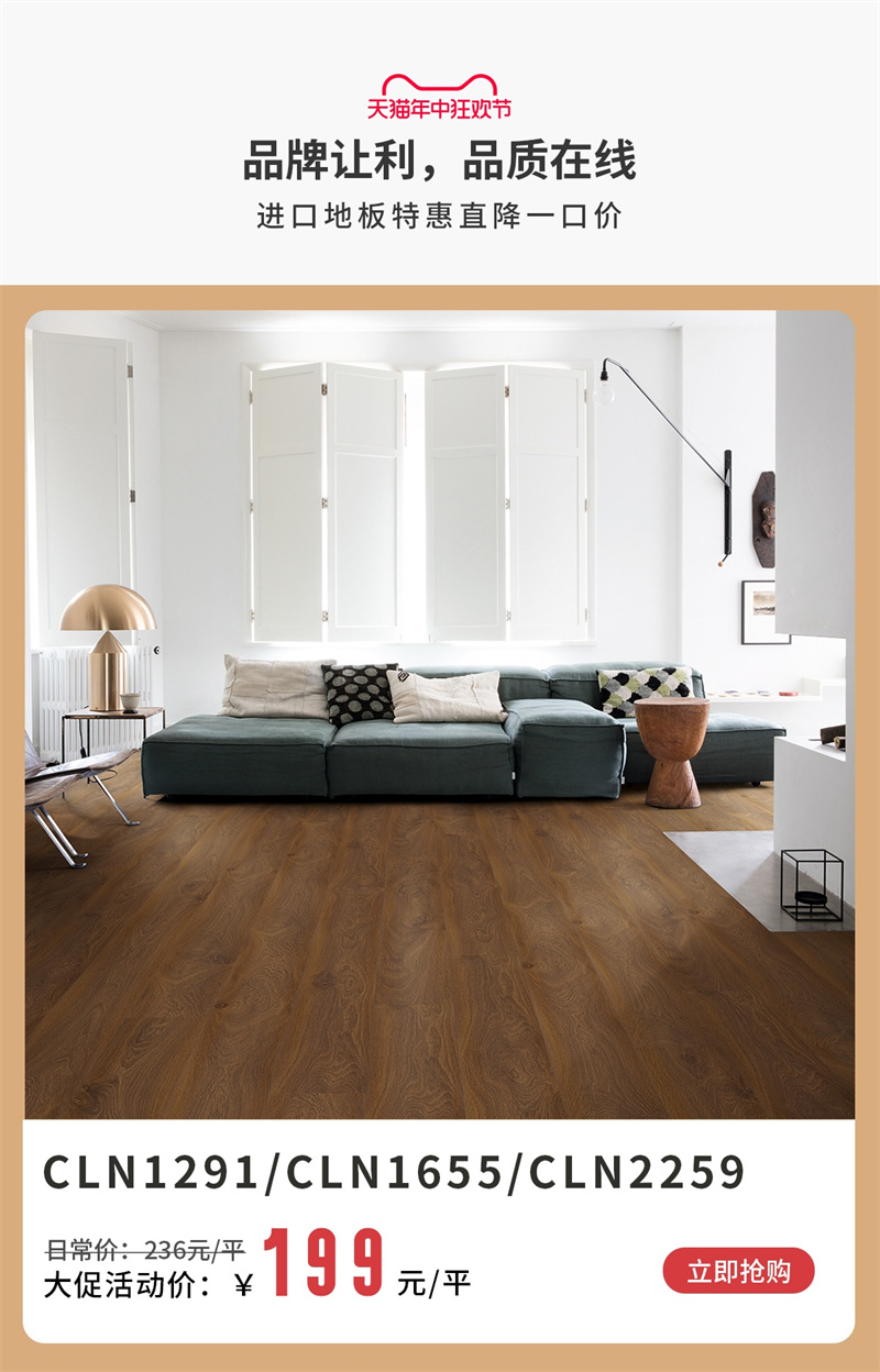 2024得高年中大促已經啟動,即日起至6月20日,兩大活動亮點不容錯過:1、得高Quick-Step進口地板部分系列特惠直降一口價!2、Quick-Step“夢想系列”地板下單立減15%!